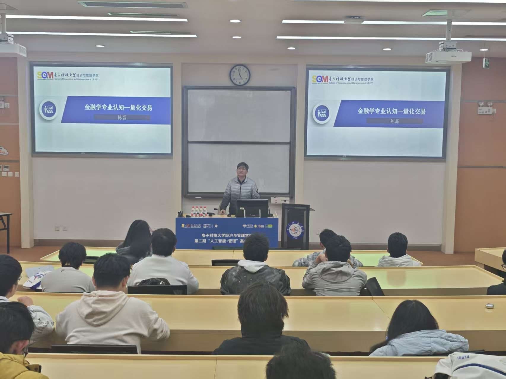 第二节课,陈磊副教授围绕“金融学专业认知:走进量化交易”分享了对金融行业的见解。他从身边常见的证券产品入手,引导同学们在日常生活中发现金融现象,逐步展开课程内容。接着,通过投掷硬币下赌注的游戏,生动形象地展现了什么是量化投资,让量化投资不再是抽象概念,使同学们有了独特的感悟。