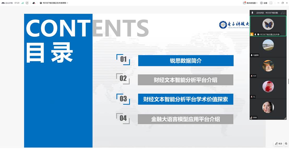 为助力师生高效利用数据资源开展学术研究,经管学院实验与信息中心特邀北京聚源锐思数据科技有限公司(RESSET)的高级培训师杨欣蕾于2025年12月17日下午开展线上培训,培训主题为“数字经济时代文本类数据的实证分析与研究”,经管学院近25名学生参与此次培训,本次活动由实验与信息中心马建莉老师主持。