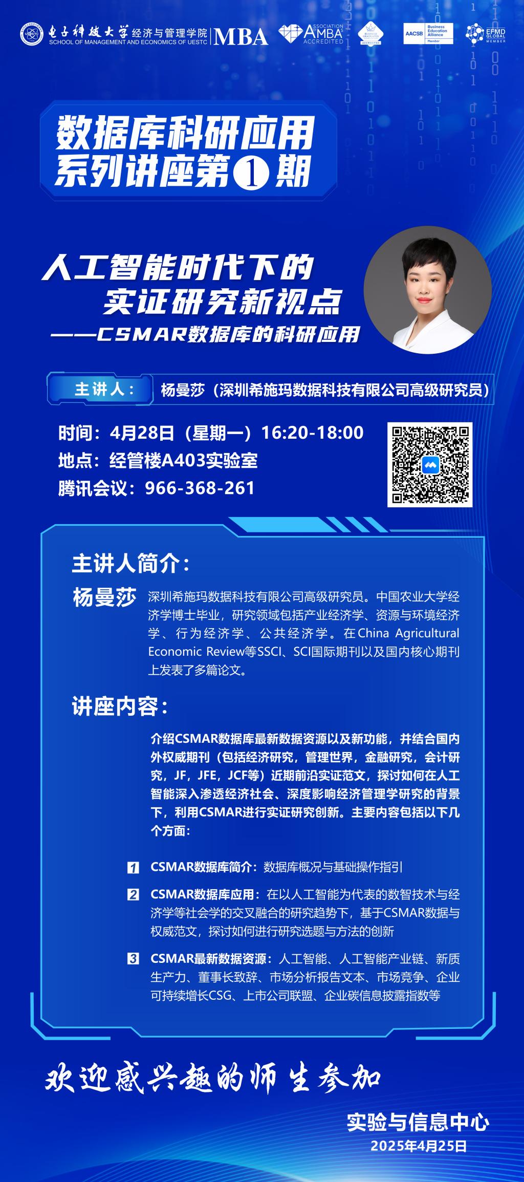 讲座主题:人工智能时代下的实证研究新视点——CSMAR数据库的科研应用